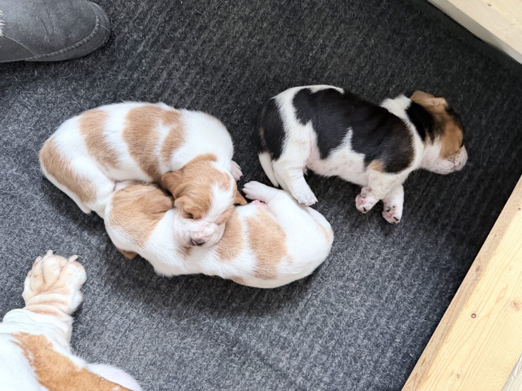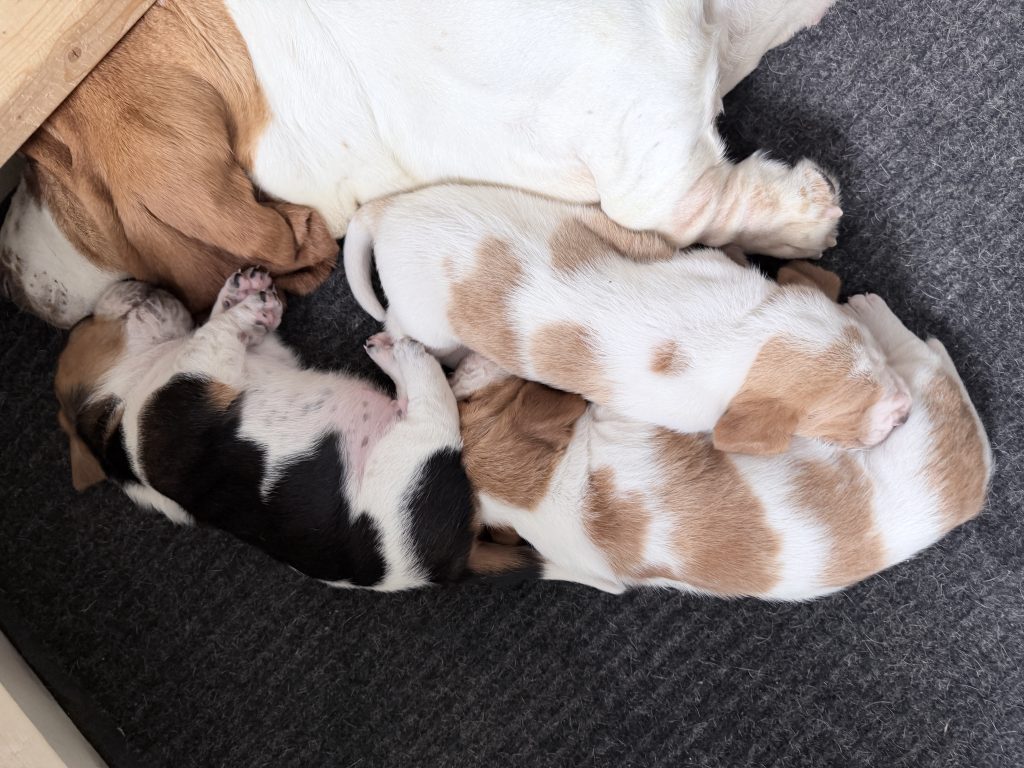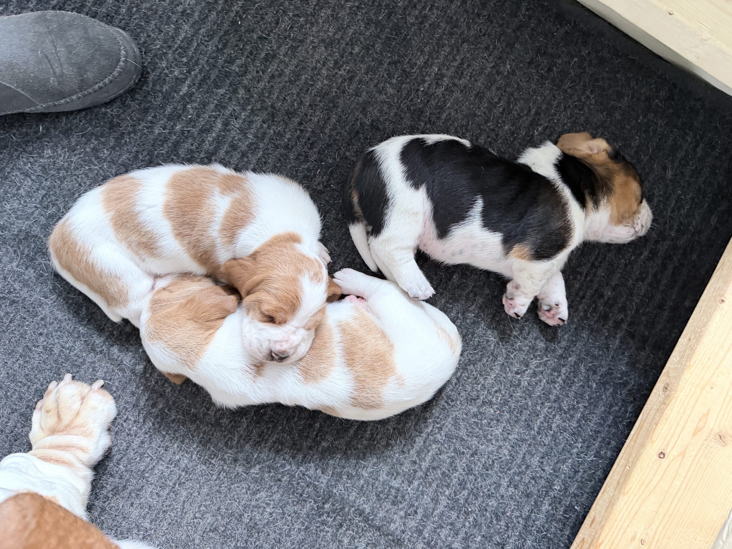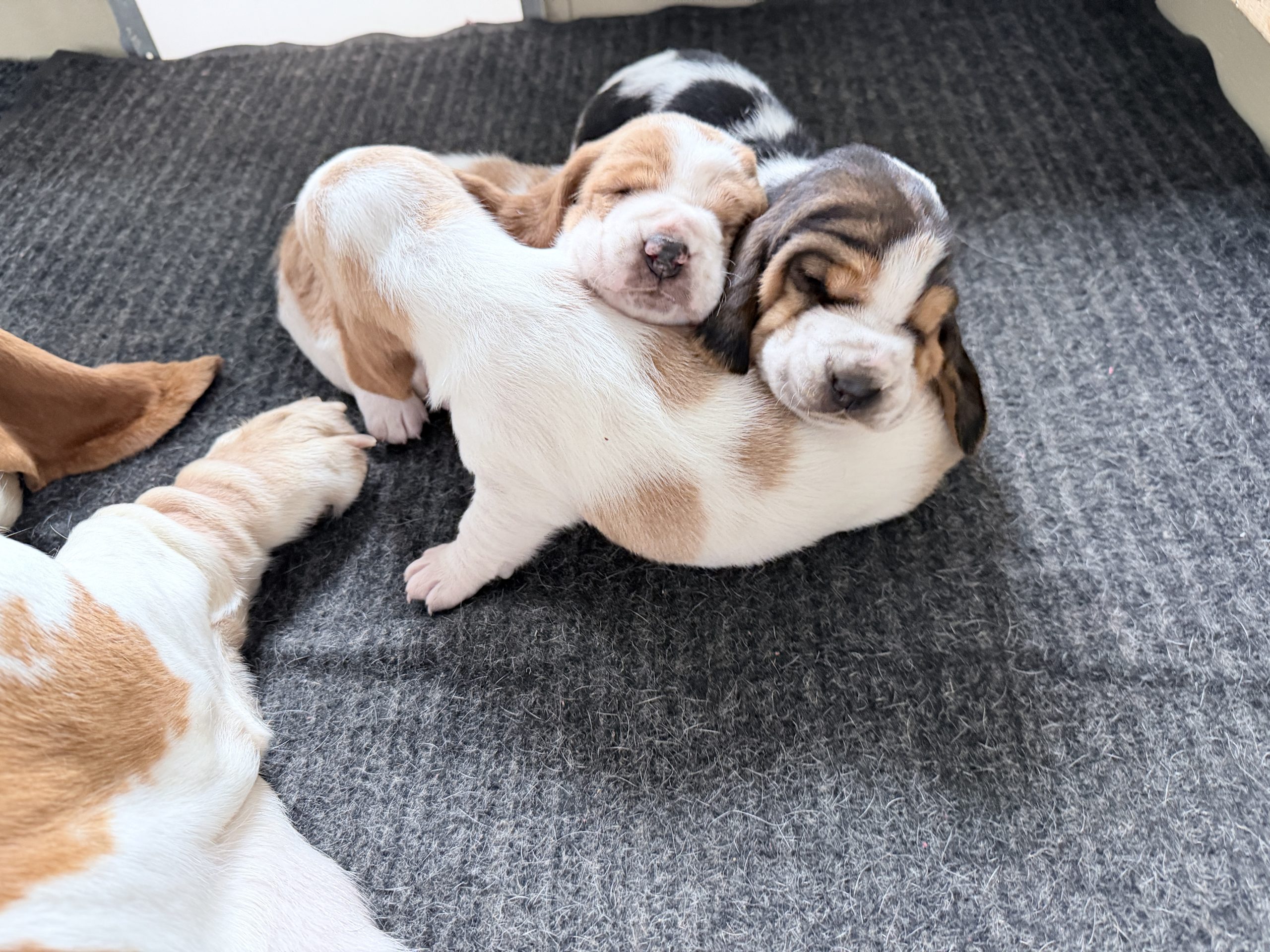 If you are interested in one of these pups please email me at mjg@goldenassetkennels.ca or fill out our Puppy Application Our Basset Hound Puppies are sold on a first come first serve basis according to the waiting list. There is a $650.00 deposit to be added to our waiting list. When the puppy is born there is a $1200.00 deposit to hold the pup for you. There is another deposit of $1250.00 due when the pups are 4 weeks of age. All deposits are non refundable. The balance is due on pick up day. If you are interested in a basset hound pup from our litter, please email me for more information. mjg@goldenassetkennels.ca or give me a call at 705-440-7644. Or you can fill out our Puppy Application Prices for one of our Basset Hound puppies is $3900.00 plus taxes. Plus $100.00 when the puppy goes home for a 35 pound bag of food that that the puppy is already started on.