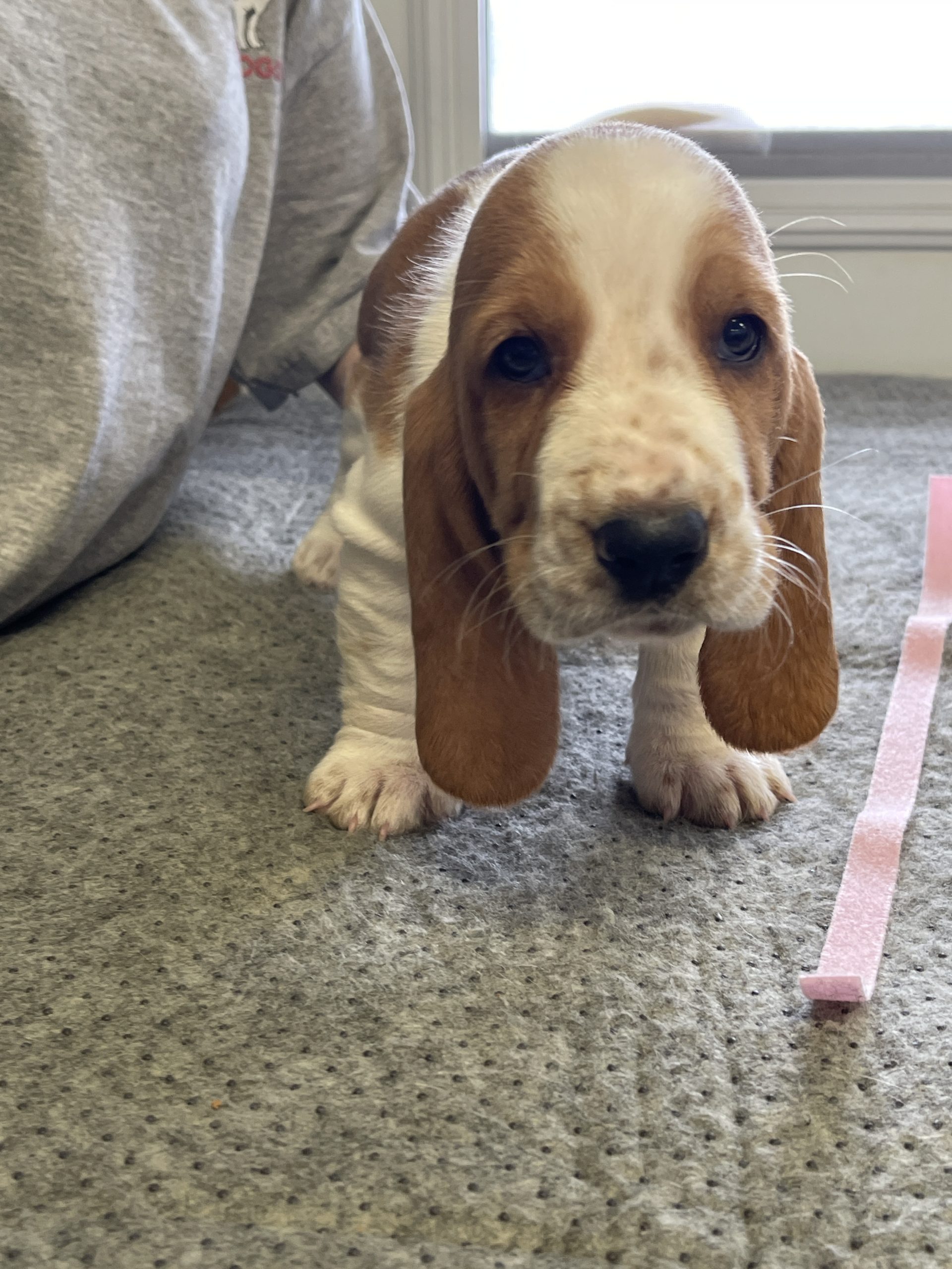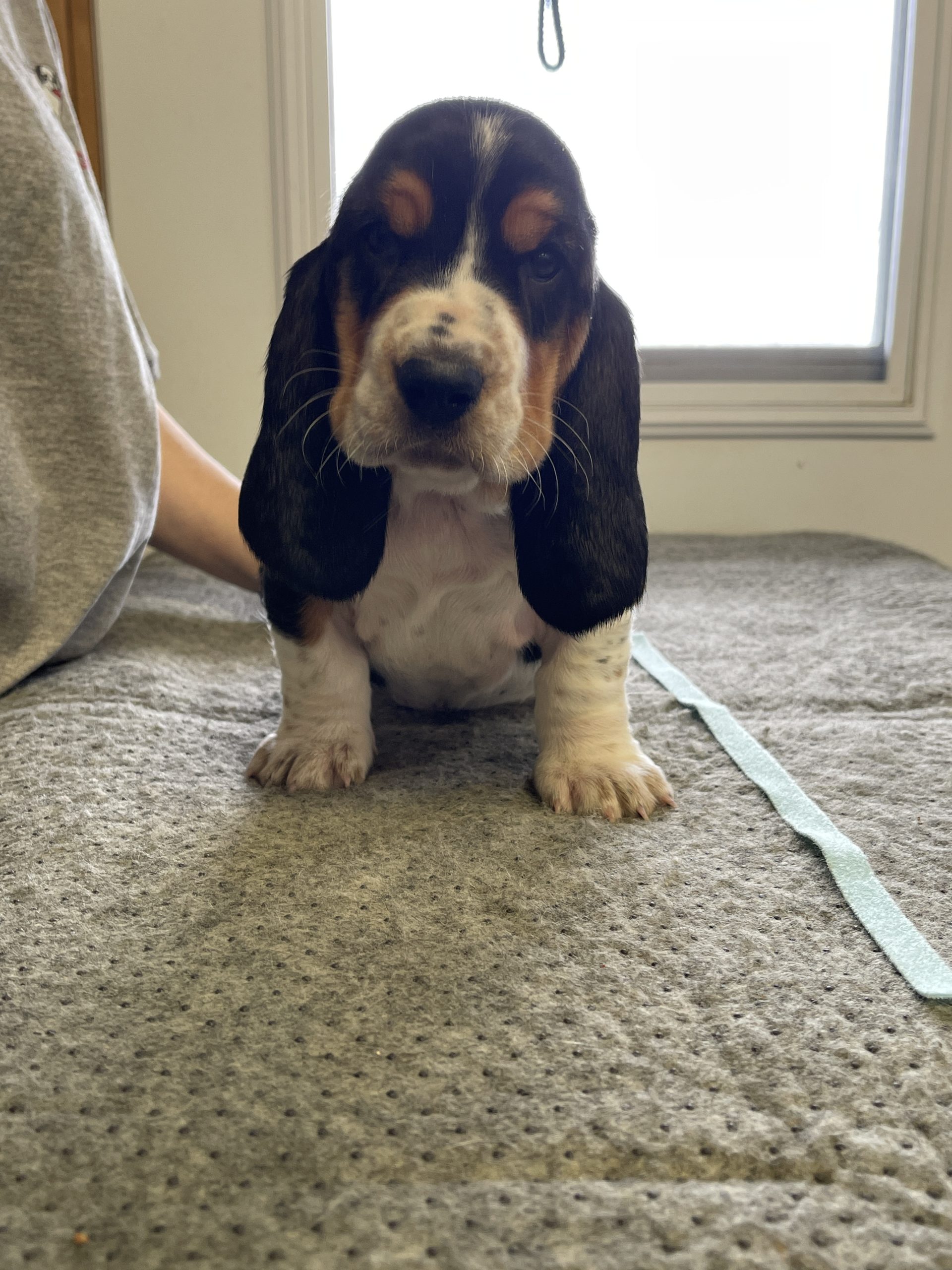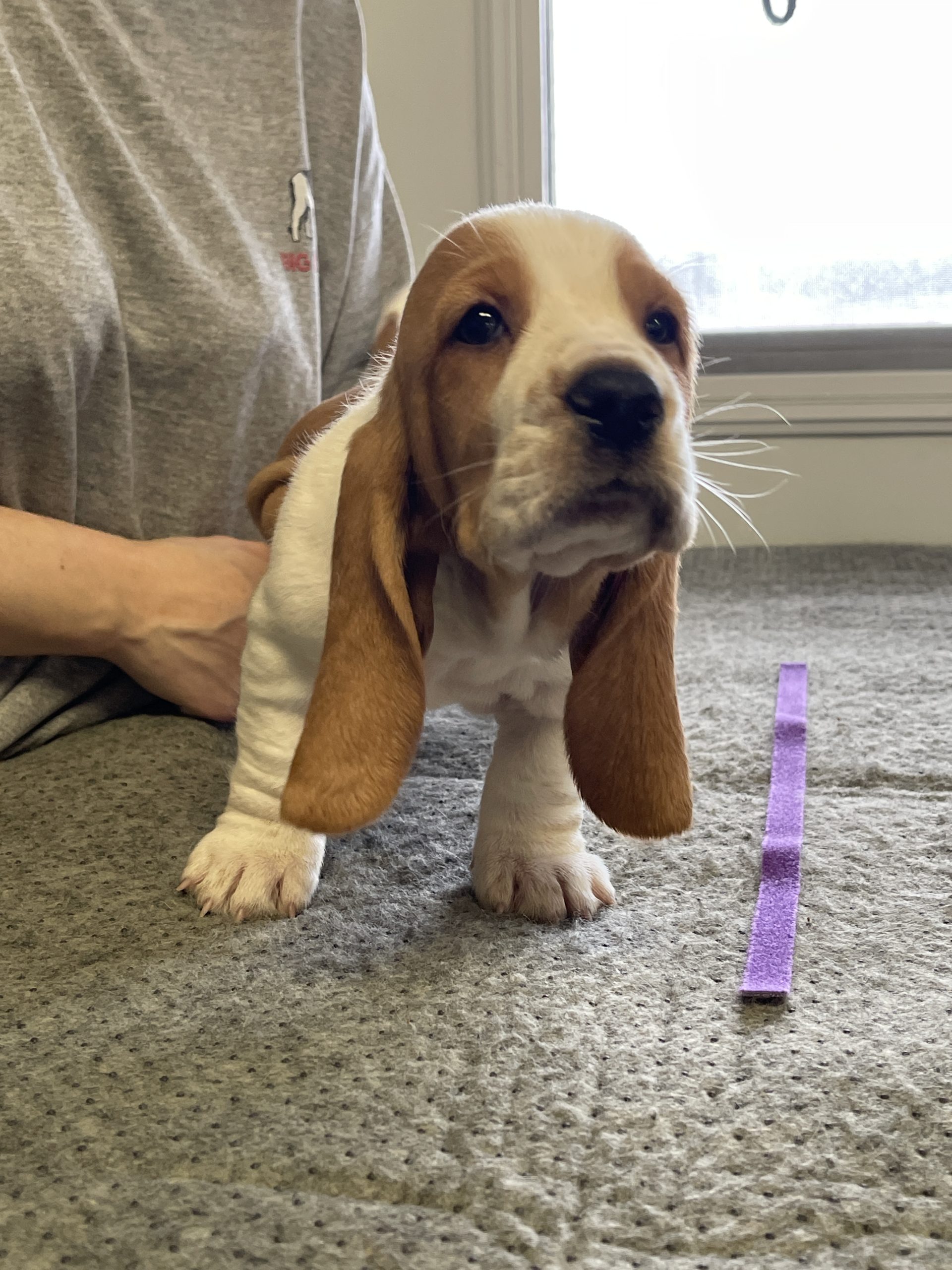 If you are interested in one of these pups please email me at mjg@goldenassetkennels.ca or fill out our Puppy Application Our Basset Hound Puppies are sold on a first come first serve basis according to the waiting list. There is a $650.00 deposit to be added to our waiting list. When the puppy is born there is a $1200.00 deposit to hold the pup for you. There is another deposit of $1250.00 due when the pups are 4 weeks of age. All deposits are non refundable. The balance is due on pick up day. If you are interested in a basset hound pup from our litter, please email me for more information. mjg@goldenassetkennels.ca or give me a call at 705-440-7644. Or you can fill out our Puppy Application Prices for one of our Basset Hound puppies is $3800.00 plus taxes. Plus $100.00 when the puppy goes home for a 35 pound bag of food that that the puppy is already started on.