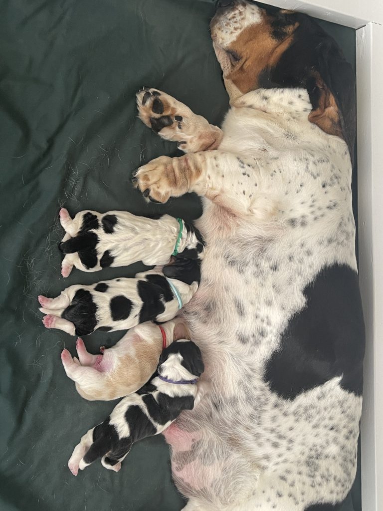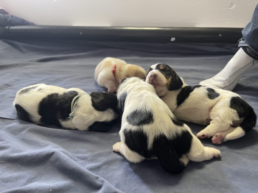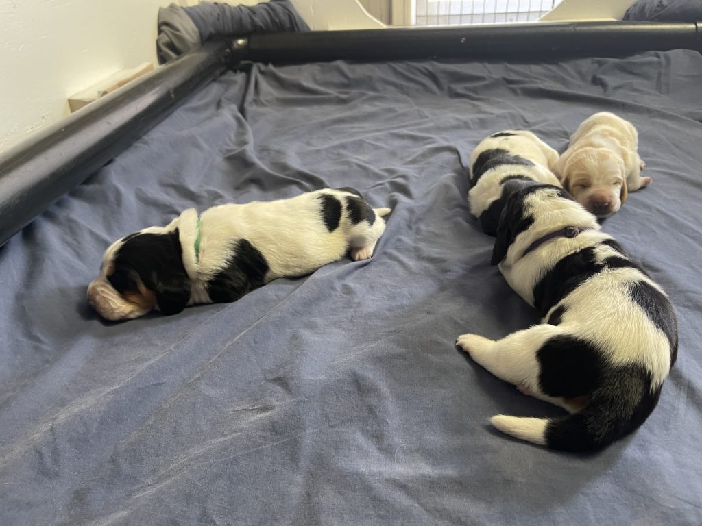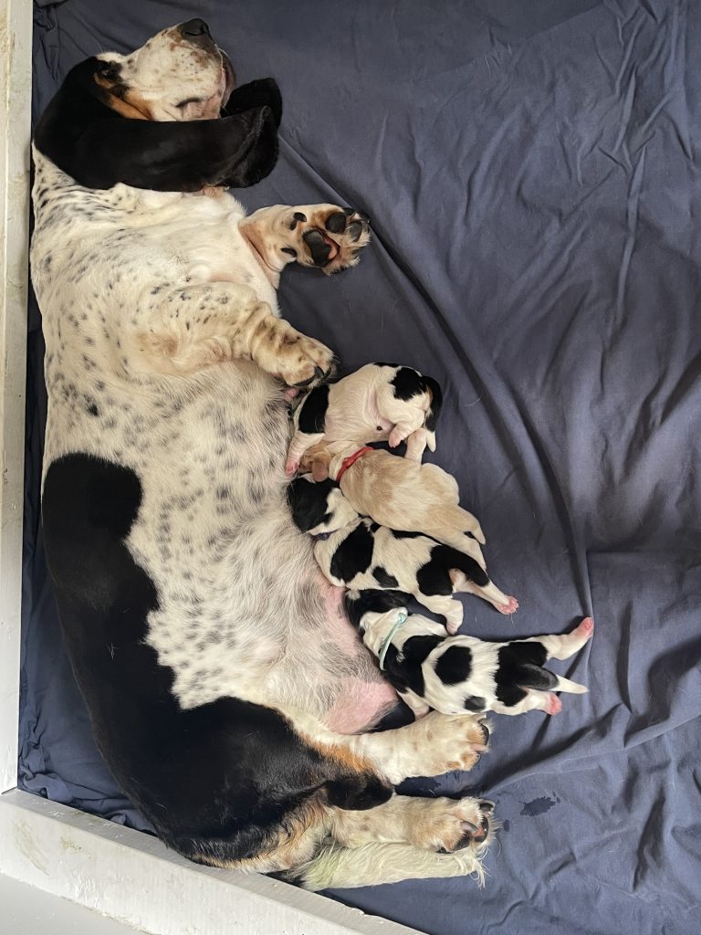 If you are interested in one of these pups please email me at mjg@goldenassetkennels.ca or fill out our Puppy Application  Our Basset Hound Puppies are sold on a first come first serve basis according to the waiting list. There is a $600.00 deposit to be added to our waiting list. When the puppy is born there is a $1150.00 deposit to hold the pup for you. There is another deposit of $1250.00 due when the pups are 4 weeks of age. All deposits are non refundable. The balance is due on pick up day. If you are interested in a basset hound pup from our litter, please email me for more information. mjg@goldenassetkennels.ca or give me a call at 705-440-7644. Or you can fill out our Puppy Application  Prices for one of our Basset Hound puppies is $3700.00 plus taxes.  Plus $95.00 when the puppy goes home for a 35 pound bag of food that that the puppy is already started on.