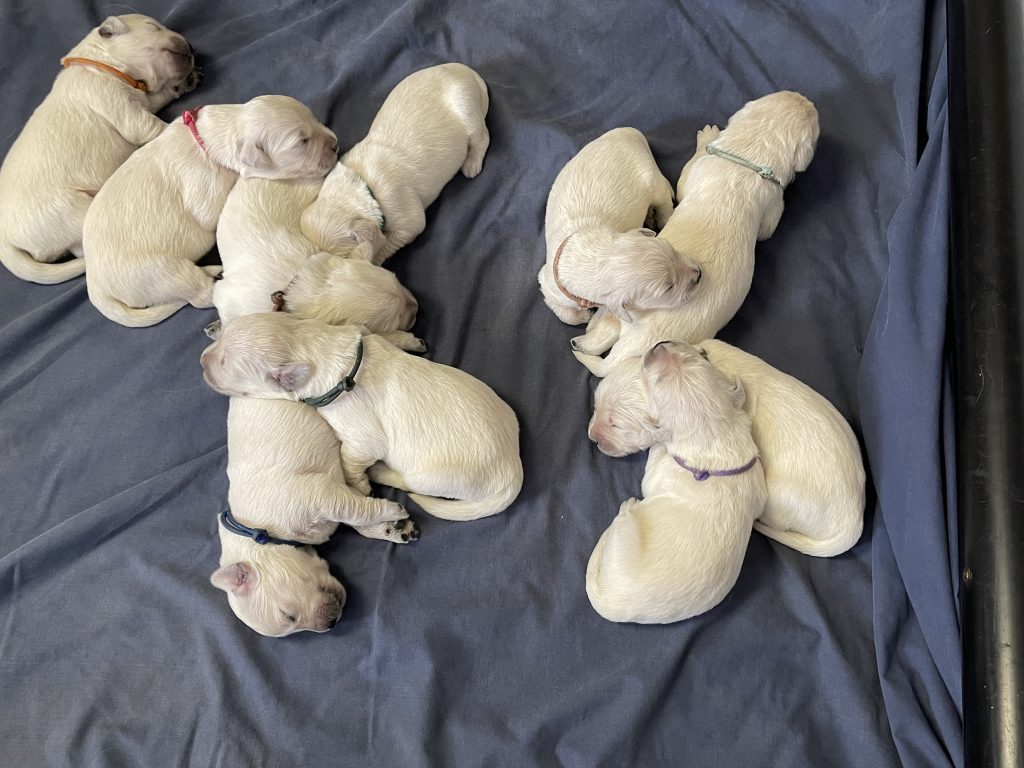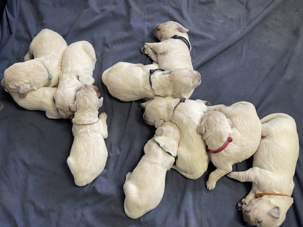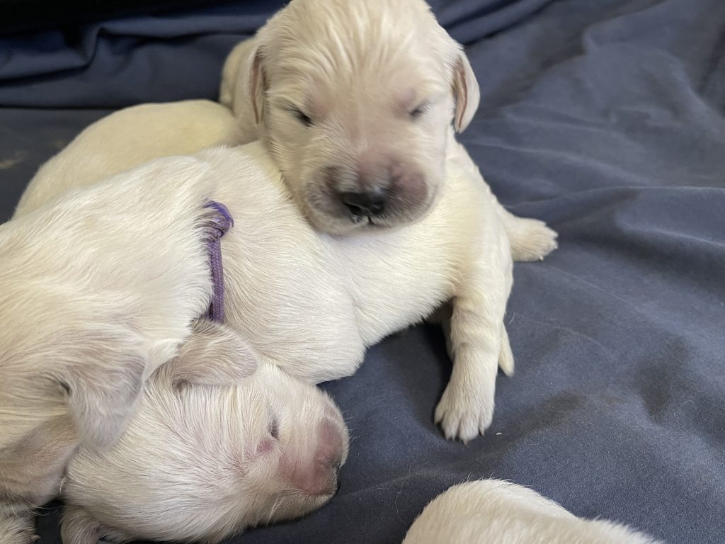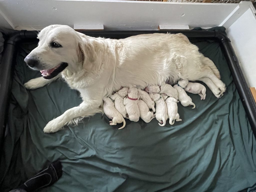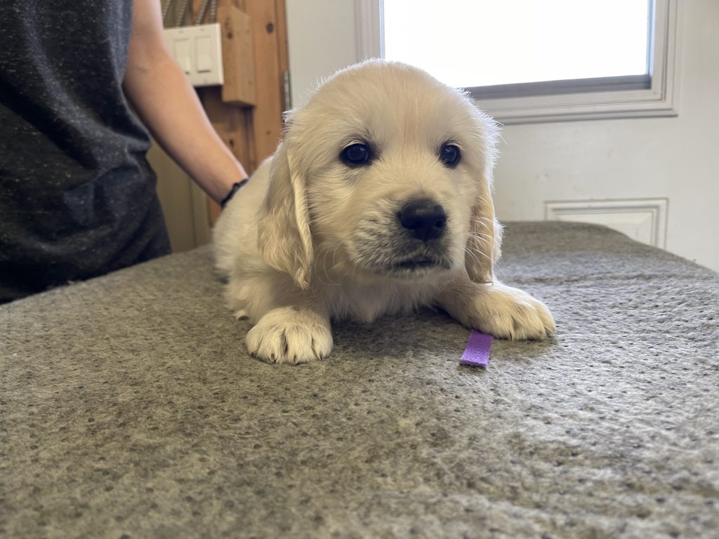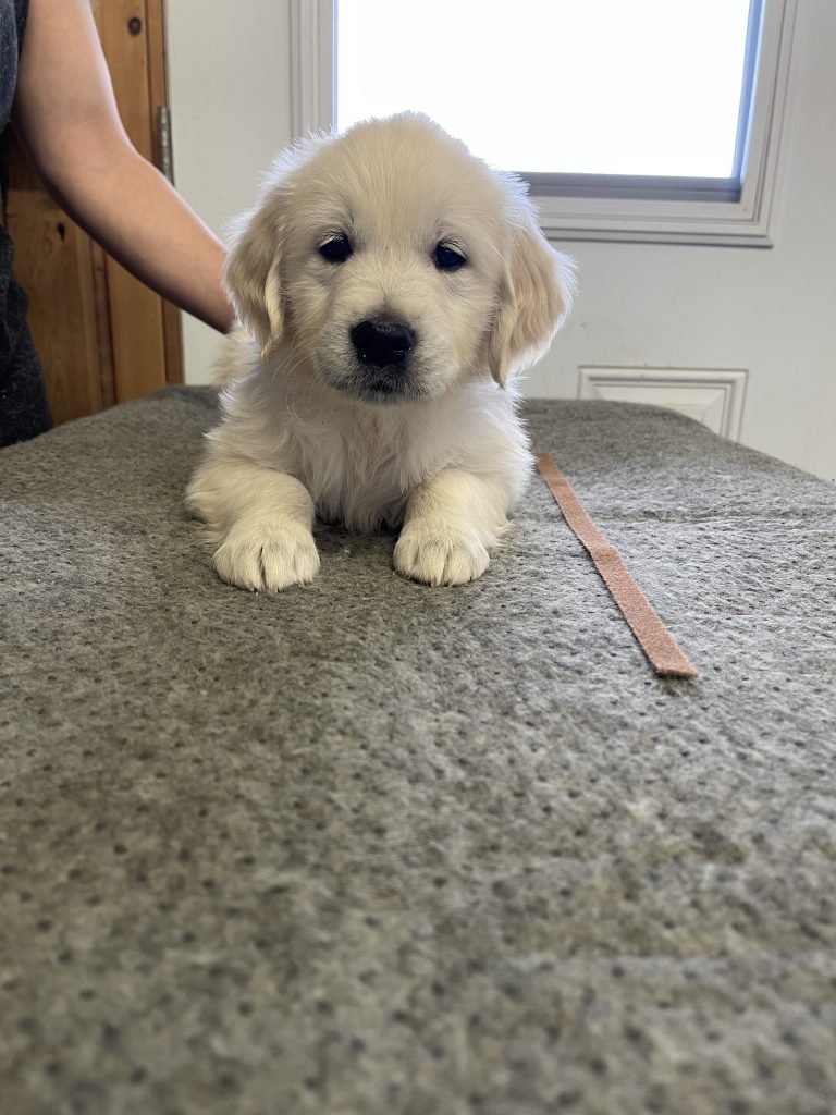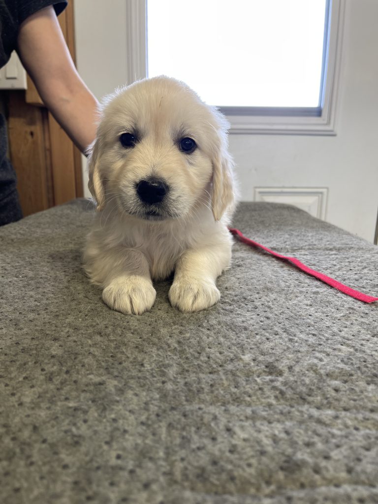 If you are interested in one of these pups please email me at mjg@goldenassetkennels.ca or fill out our Puppy Application. Our Golden Retriever Puppies are sold on a first come first serve basis according to the waiting list. There is a $600.00 deposit to be added to our waiting list. Once the puppy is born there is a $1250.00 deposit to hold the pup for you. When the puppies are 6 weeks old a $1150.00 deposit is due. Final payment is due at time of pick up. All deposits are non refundable. If you are interested in a Golden Retriever pup from our litter, please email me for more information. mjg@goldenassetkennels.ca or give me a call at 705-440-7644. Or you can fill out our Puppy Application  Prices for one of our Golden Retriever puppies are $3400.00 plus taxes.  Plus $95.00 when the puppy goes home for a 35 pound bag of food that that the puppy is already started on.